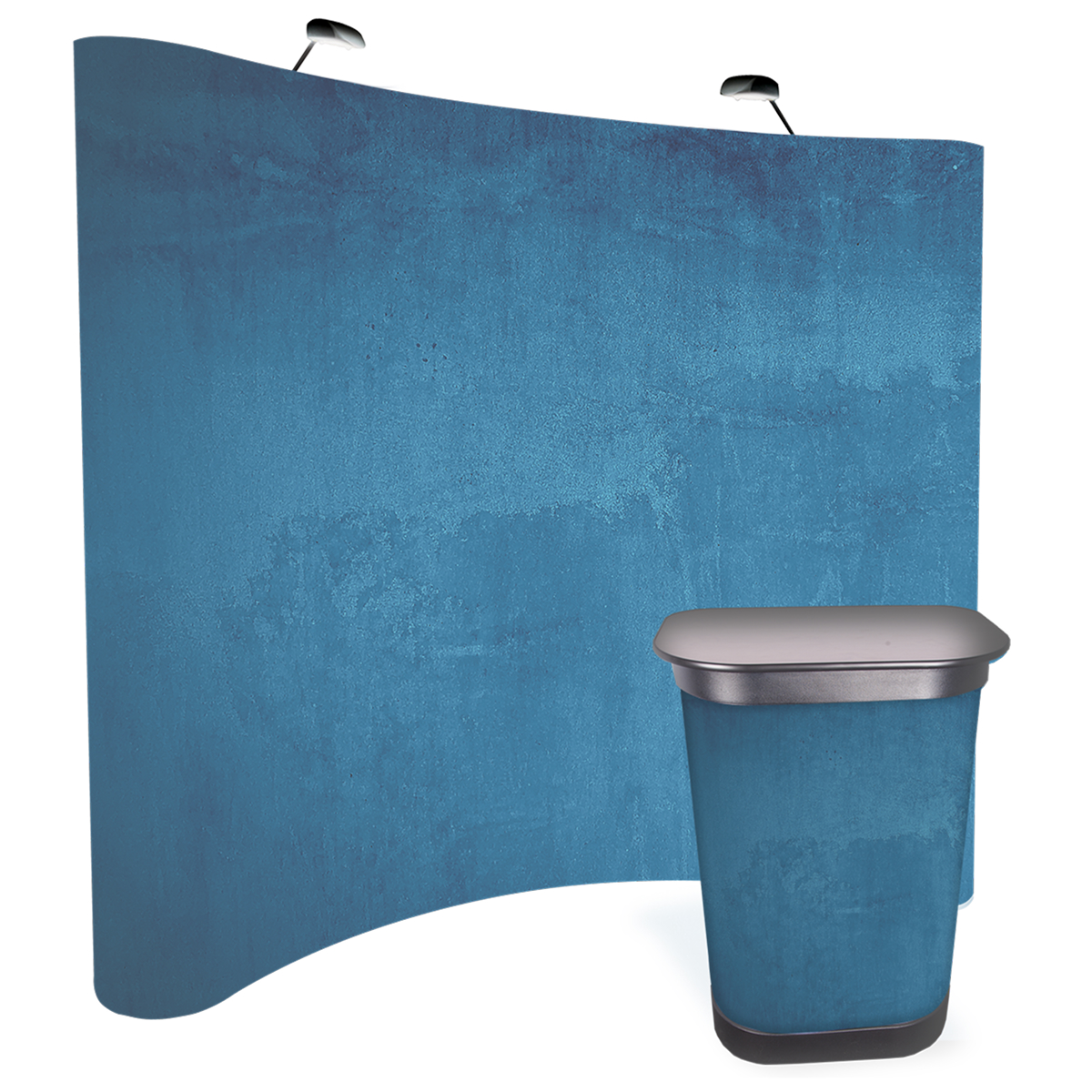 Nejběžnější pop-upová prezentační stěna s v oblém provedení, která se hodí pro použití na výstavách, veletrzích i předváděcích akcích, v kompletním balení, kde k ní obdržíte také dvě halogenová světla Powerspot 950 pro lepší nasvícení prezentace a přepravní box Zeus, z něhož přidáním dřevěné desky s imitací buku vytvoříte prezentační pult. Nůžkovou konstrukci sestavíte snadno a rychle se zajištěním magnetických tyčí. Grafické PVC panely se na konstrukci umisťují pomocí magnetické pásky a zavěšením na háčky tyčí. Sestavení celého produktu trvá zhruba 15 minut a není k němu zapotřebí jakéhokoliv nářadí. Součástí balení je také praktická taška pro snadné a bezpečné přenášení.